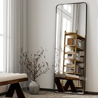 Supporto a specchio arrotondato nero con struttura in alluminio a tutta lunghezza per decorazioni per la casa soggiorno camera da letto